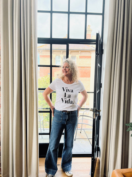 Viva La Vida Slogan Organic Cotton Short Sleeve Tee - White