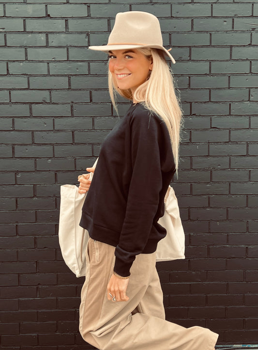Make Your Soul Shine Embroidered Slogan Organic Cotton Sweatshirt - Black