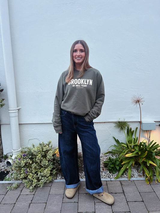 Brooklyn Logo Organic Cotton Sweatshirt in Vintage Olive Green