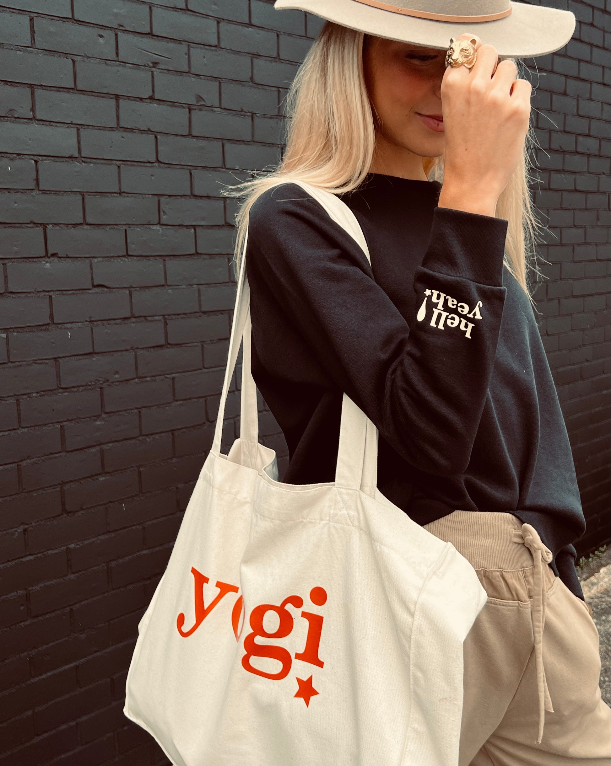 Yogi Ecru Organic Cotton Extra Large Shopper Bag with Burnt Orange Print _ New In !